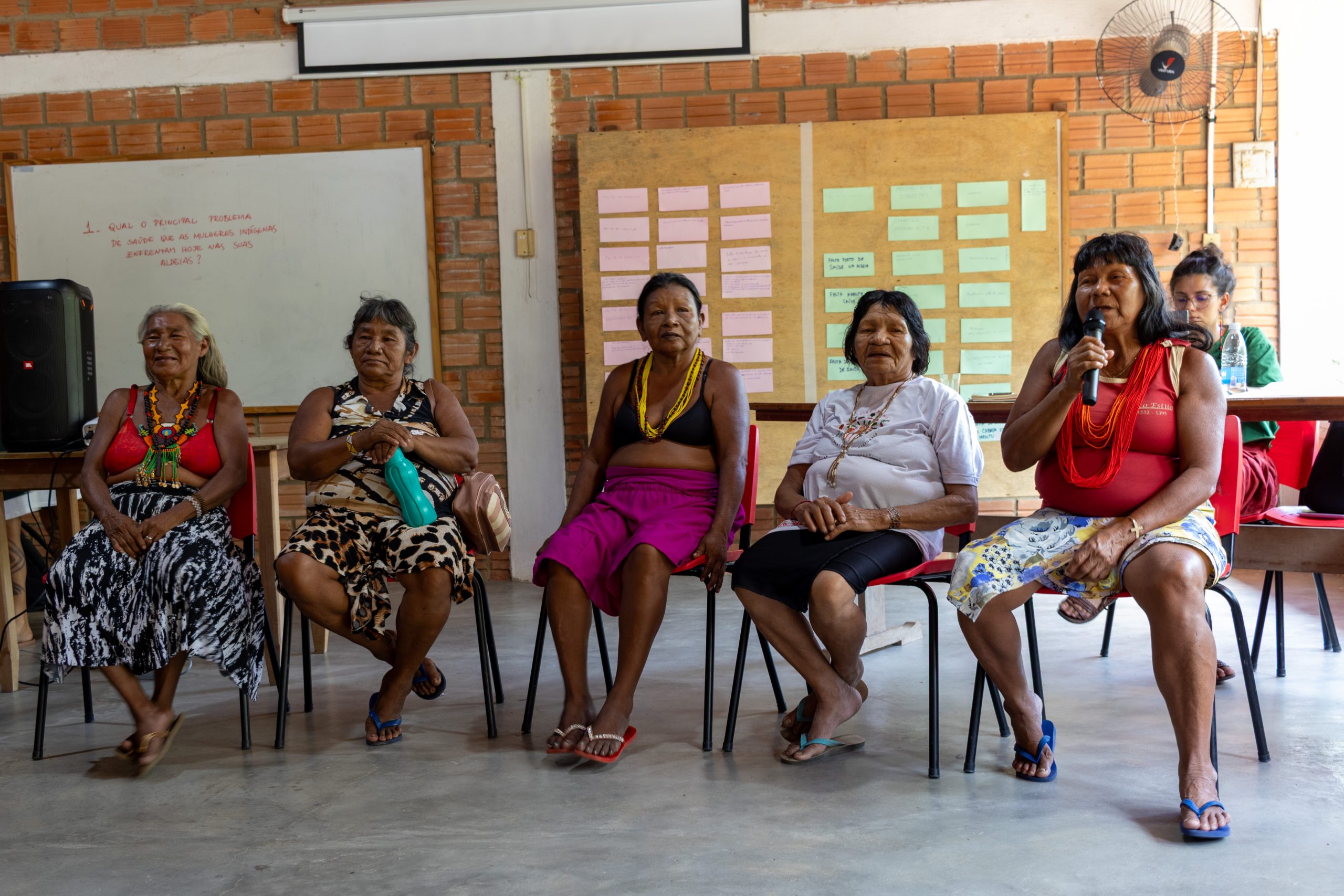 Para Creuza Prukwyi Krahô, liderança do povo Krahô, o encontro representa um espaço essencial para que as mulheres possam se expressar livremente. “Eu fico contente de ver as mulheres abrindo o peito, falando o que elas querem falar, falando o pensamento delas. E é isso que esse encontro está trazendo, são todas essas palavras, pensamentos, memórias…”, explica.