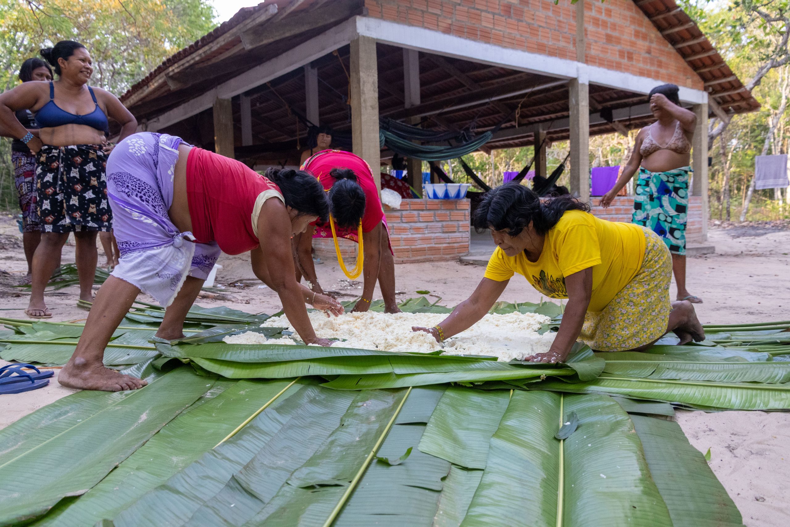 O último dia foi de celebração e união, com vivências que reafirmaram os laços entre as participantes e o vínculo com os saberes tradicionais. Houve coleta de plantas medicinais nas proximidades do Pënxwyj Hëmpejxà, feira de sementes e atividades culturais, como cantos, corrida de toras e o preparo do paparuto/berubu, comida típica dos Timbira que simbolizou a partilha e o encerramento coletivo do encontro.