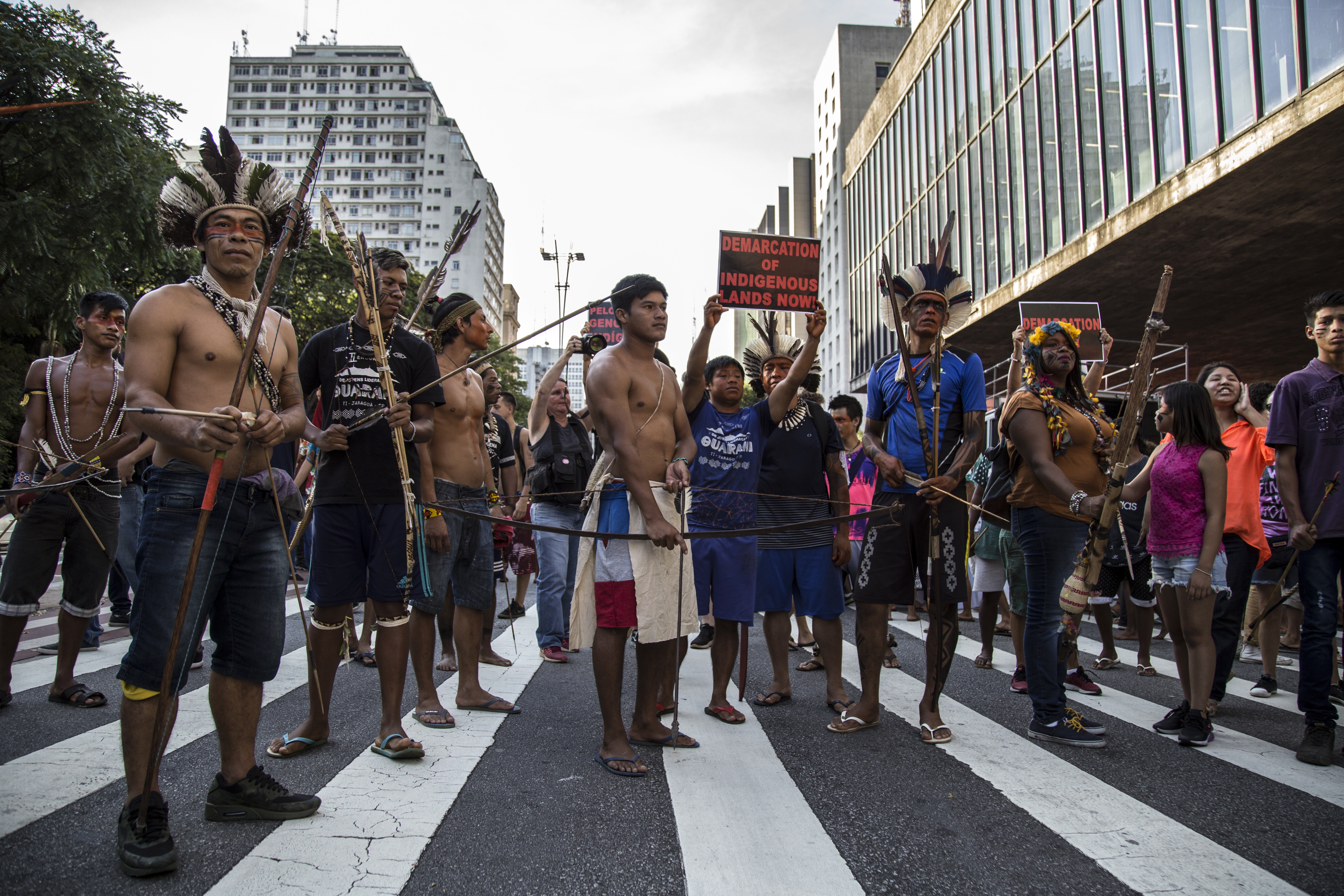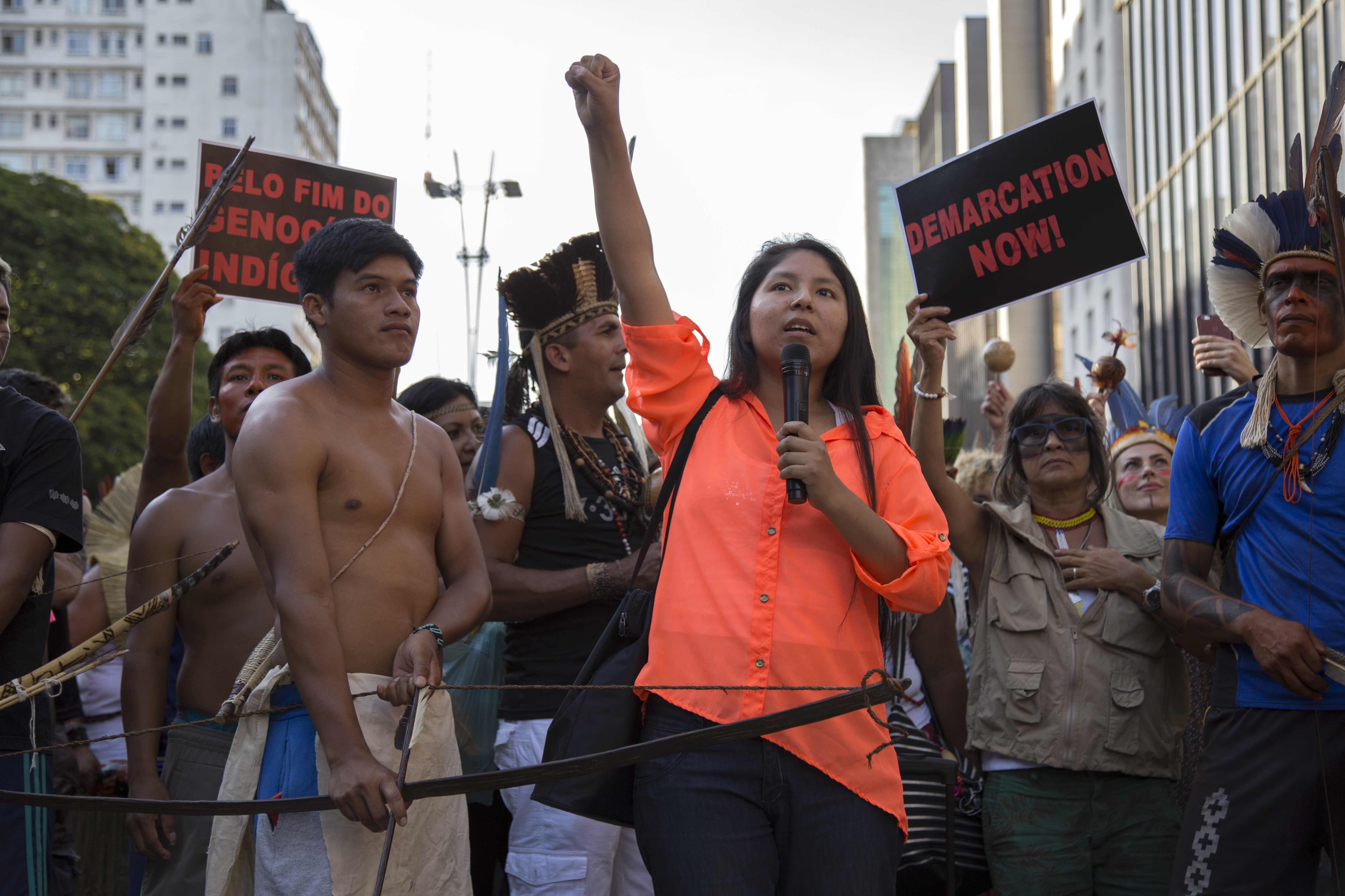 Com concentração inicial no vão livre do Museu de Arte de São Paulo (Masp), os manifestantes de diversos povos indígenas marcharam pela Avenida Paulista até próximo ao prédio do escritório da Presidência da República, onde lideranças discursaram em um carro de som denunciando a violência contra suas comunidades. Faixas e cartazes pediam a retomada das demarcações de terra e o fim do genocídio da população indígena.