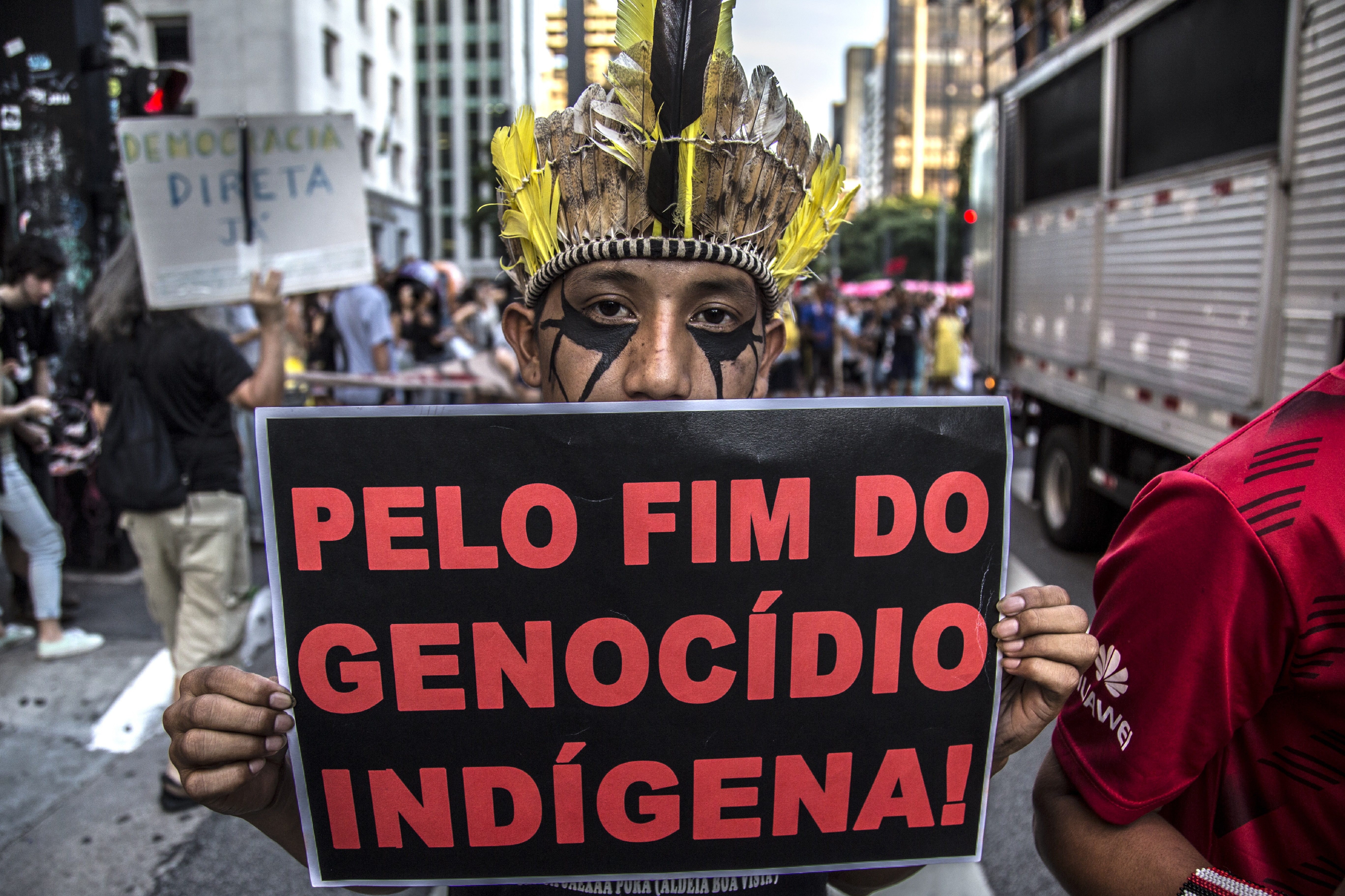 “Essa situação que estamos enfrentando de ataques a nossos territórios foi promovida por esse que se diz um presidente democrático. Estão transformando esse país em um Estado violento e genocida”, denuncia David Martim Karai Popygua, da comunidade Guarani da Terra Indígena Jaraguá, no município de São Paulo.