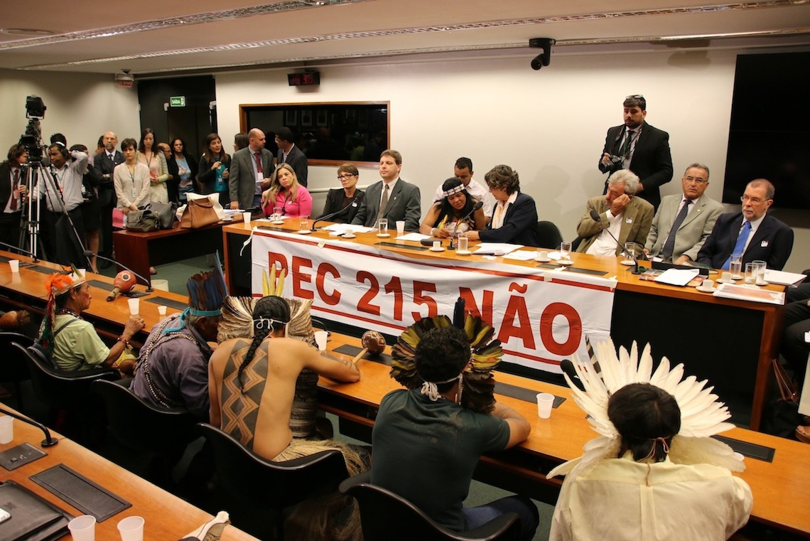 Em mais um esforço para conter o avanço da Proposta de Emenda Constitucional (PEC) 215 no Congresso Nacional, a Frente Parlamentar em Apoio aos Povos Indígenas, juntamente com a Frente Parlamentar em Defesa dos Direitos Humanos e a Frente Parlamentar Ambientalista, convocou uma audiência pública para debater as consequências negativas de tal medida para as populações indígenas, comunidades quilombolas e demais povos tradicionais. A plenária, que aconteceu nesta terça-feira (19) na Câmara dos Deputados, reuniu lideranças indígenas, especialistas, representantes quilombolas e de organizações parceiras da sociedade civil, além de parlamentares aliados, na tentativa de definir estratégias conjuntas de ação.