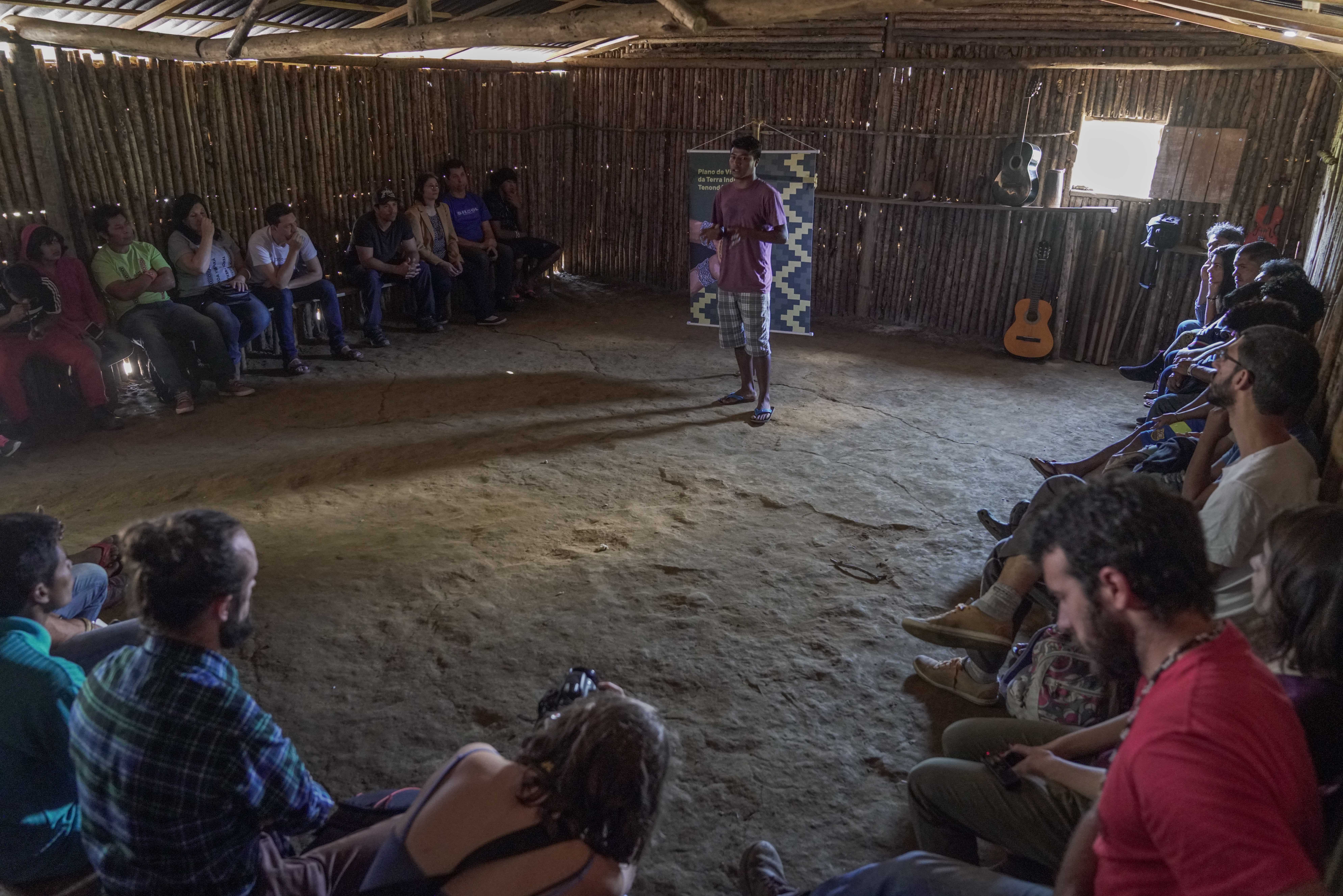 A casa de reza do tekoa Yrexakã, uma das 8 aldeias do território, reuniu lideranças guarani e parceiros do movimento indígena durante o evento, além de representantes do turismo, da prefeitura de São Paulo e da Área de Proteção Ambiental (APA) Capivari-Monos – unidade de conservação próxima à TI, da Subprefeitura de Parelheiros –, que fizeram falas em apoio ao plano. A pluralidade do grupo presente parece ir de encontro com um dos objetivos escritos logo nas primeiras páginas do documento: “que mais pessoas juntem-se à nossa luta por um mundo plural – um mundo em que caibam muitos outros mundos”.